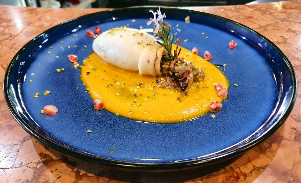 Calamari e funghi porcini su vellutata di zucca